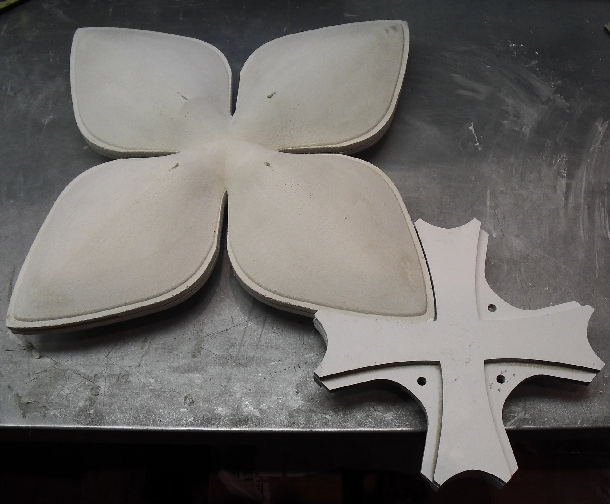 After learning the fundamentals of computer-aided design (CAD), students then transformed their collages into virtual 3-D design and used a CNC router to translate their virtual 3-D designs into styrofoam. (The students then finished their relief sculptures with a hard surface coating using Aqua-Resin and Aqua-Glass.)